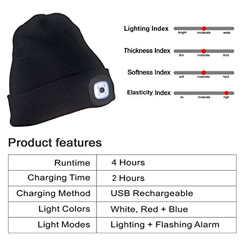 FIT FOR: it is perfect flashlight beenie for camping, cycling, grilling, auto repair, fishing, jogging or walking with dog in the cold winter night.