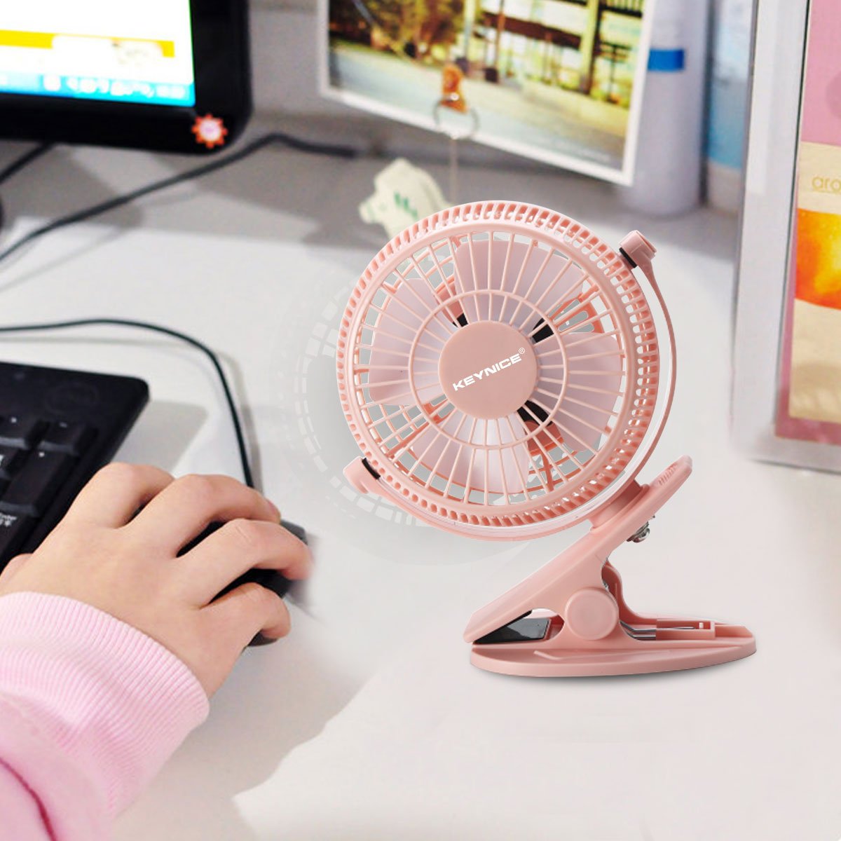 - コンパクト、クッリプ式、様々な箇所に取り付けられます。どこでも涼しい!しかも、滑り止めがついて台座としても使用できます。実用性に優れたミニ扇風機!
