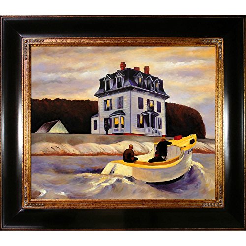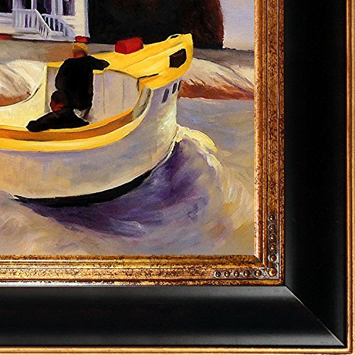 The Bootleggers is a remarkable oil painting with exceptional use of color, detail and brush strokes. This painting provides wonderful imagery of a breezy excursion with a feeling of relaxation and enjoyment. Hopper received many honors in his lifetime for his exceptional use of color, detail, and subject matter. His classic works capture the authenticity of urban and rural American life with emotions and beauty that have placed them among the lasting and popular images of the American 20th century landscape. Make this painting a part of your home collection. Frame Description: Opulent Frame - Dark Stained Wood with Gold Trim.Feature