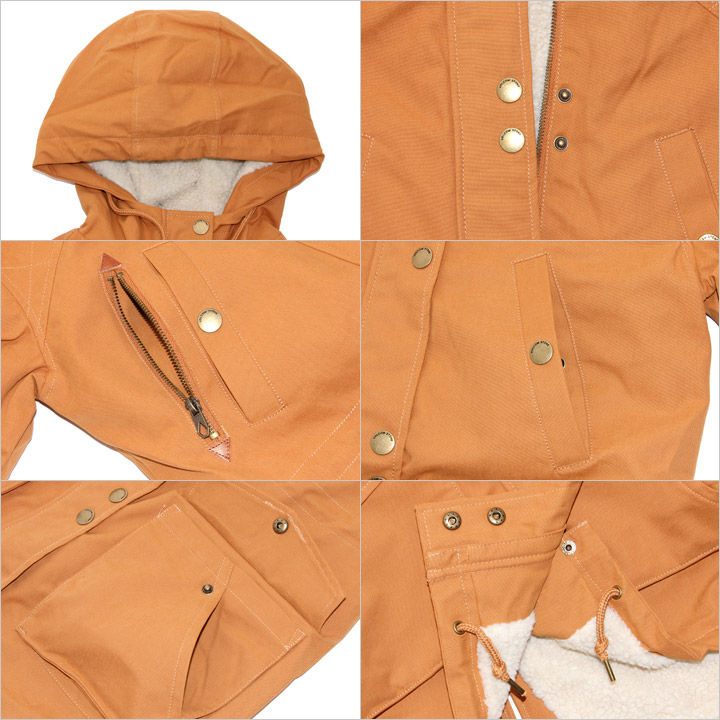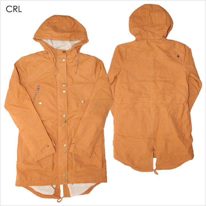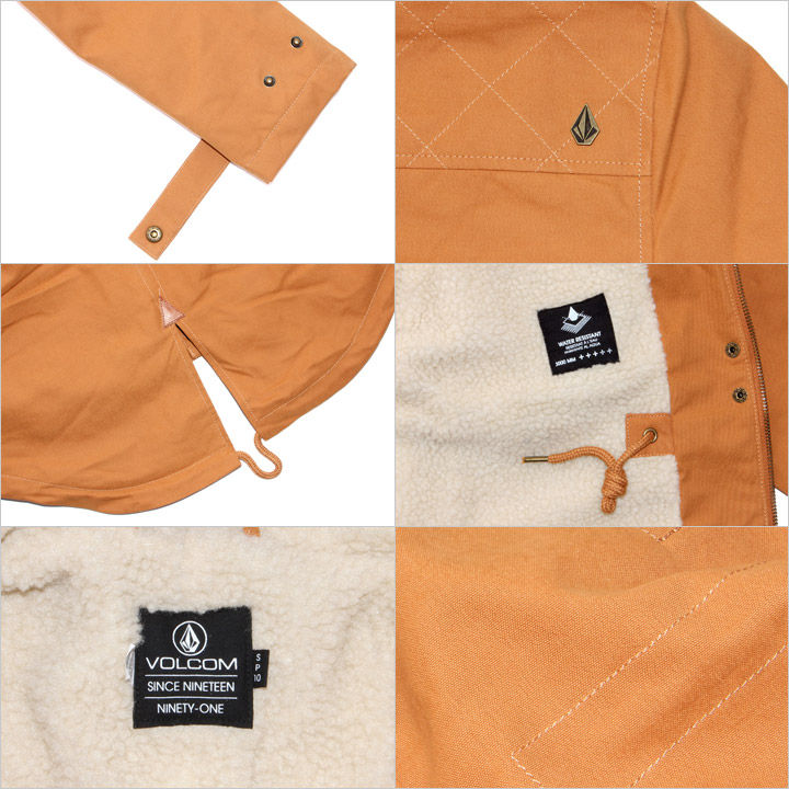 3000?防水コーティング加工のモッズコート。 肩回りにハンティングジャケットを彷彿とさせる独得なステッチが施され、シンプルなボディーシルエットの程良いアクセントになっています。この他にもヴィンテージ感のあるロゴが刻印されたメタルボタンや右肩にはVOLCOM STONEを模ったメタルパッチなど、細部にもこだわりを感じるデザインです。 また、ポケットも充実していて、グローブ着用時などでもストレスなく使用できる絶妙なサイズ感とディテール。 フードまで施された温かいボアライナーで、本格的な冬アウターとしてもオススメな一着。 デニムはもちろん、カラースキニーなど様々なパンツスタイルで合わせやすい仕上がりになっています。