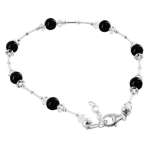 -. Title : Gem Avenue Sterling Silver Black Onyx Beads 9 to 10 inch Adjustable Ankle Bracelet with Swarovski Elements Crystal