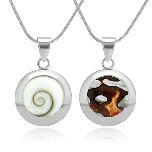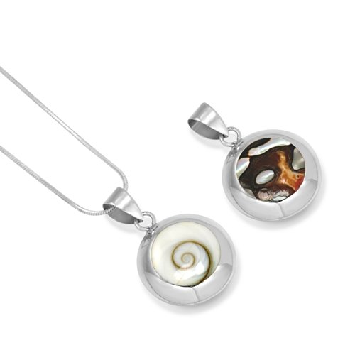 -. Title : 925 Sterling Silver White Shiva Eye and South African Turban Shell Reversible Necklace, 18 inches