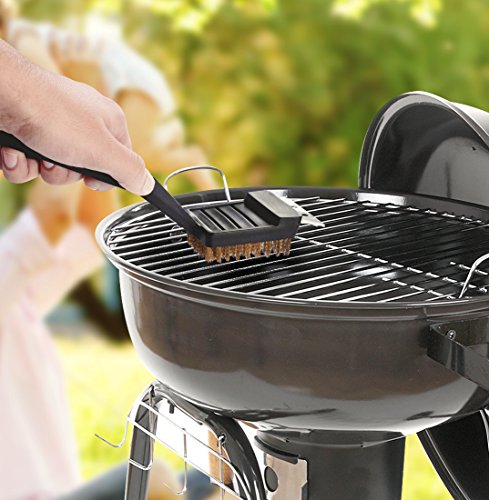 The 11 inches long barbecue grill brush with scraper effectively cleans between and under the grates, removing every bit of residue with its innovative design