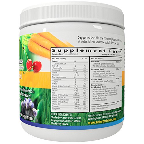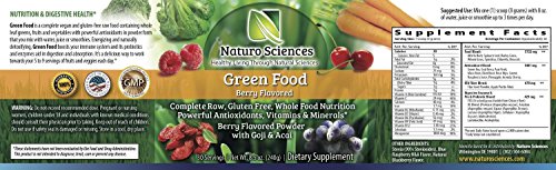 Naturo Sciences Natural Greens - Complete Raw Whole Green Food Nutrition with Super Powerful Antioxidants, Vitamins, Minerals with Goji and Acai - Amazing Berry Flavor 8.5oz (240g) 30 Servings
