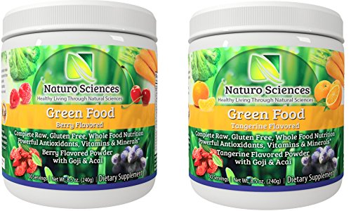Natural Greens Food By Naturo Sciences - Complete Raw Whole Green Food Nutrition with Super Powerful Antioxidants, Vitamins, Minerals - Two Pack - Two Flavors - Berry and Tangerine - One of each