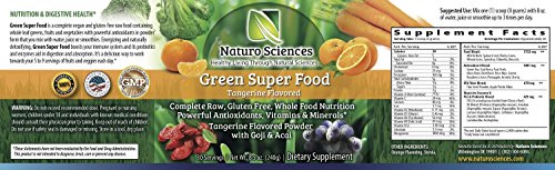 Natural Greens Food By Naturo Sciences - Complete Raw Whole Green Food Nutrition with Super Powerful Antioxidants, Vitamins, Minerals with Goji and Acai - Tangerine Flavor 8.5oz (240g) 30 Servings