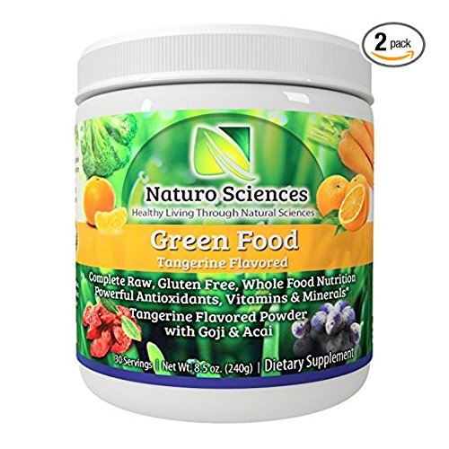 Natural Greens Food By Naturo Sciences - Complete Raw Whole Green Food Nutrition with Super Powerful Antioxidants, Vitamins, Minerals with Goji and Acai - Tangerine Flavor 8.5oz (240g) 30 Servings, Pack of Two - 60 Servings Total