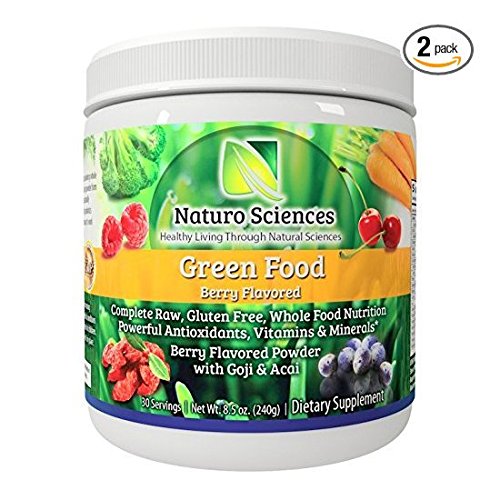 Natural Greens Food By Naturo Sciences - Complete Raw Whole Green Food Nutrition with Super Powerful Antioxidants, Vitamins, Minerals with Goji and Acai - Amazing Berry Flavor 8.5oz (240g) 30 Servings, Pack of Two - 60 Servings Total