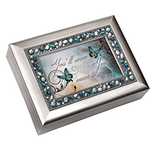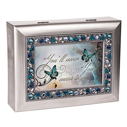 You'll Never Know How Much You Mean to Me Musical Music Jewelry Box - Plays What a Wonderful World, Metallic Silver