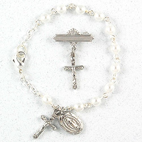 -. Title : Baby Jewelry Silver Imitation Pearl Infant Baby Bracelet & Crucifix Pin Set.