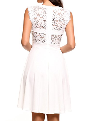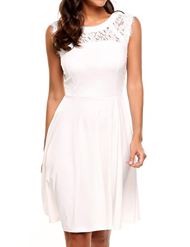 Featuring Lace patchwork round neckline, sleeveless, A-line shaped party evening dress