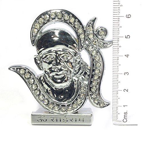 Discount4Product Metal Silver Color Om With Sai Baba Idol For Puja Or Car Front Standard Multi
