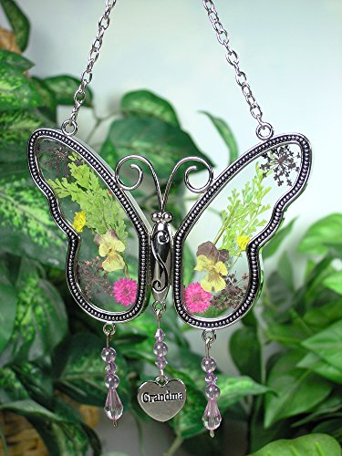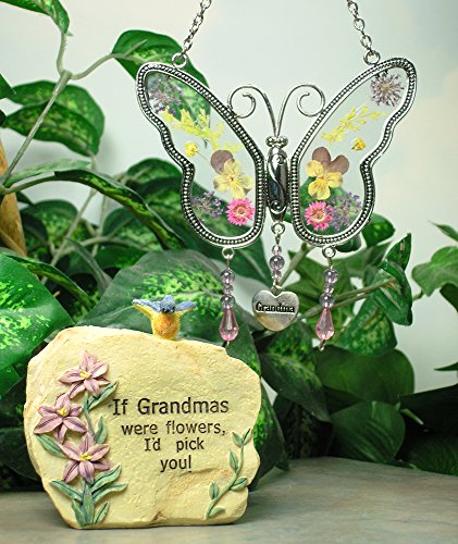 Grandma Gifts - Grandma Message Rock and Butterfly Suncatcher Set - Butterfly Has Hanging Charm with Grandma Engraved on It - Grandma Gift - Grandma to Be - Mother-in-law