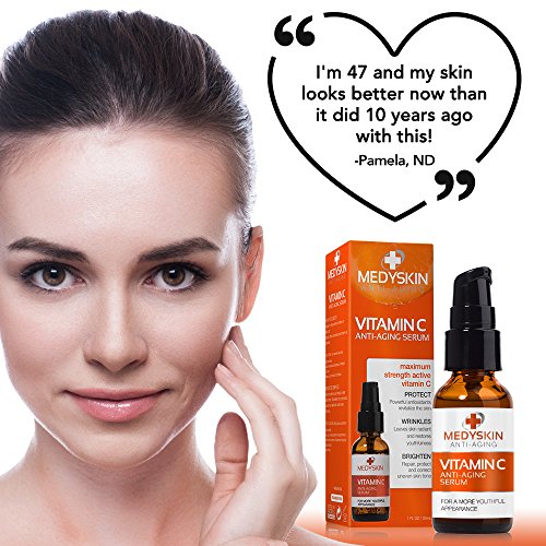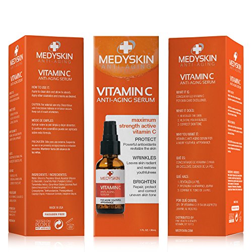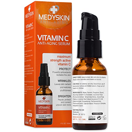 Medyskin Vitamin C Anti-Aging Serum helps brighten, repair, and correct uneven skin tones. This unique blend is specially formulated with powerful antioxidants to revitalize skin. It repairs and rejuvenates skin, protects skin from environmental factors and sun damage, and deeply hydrates preventing the formation of fine lines. Medyskin Vitamin C Anti-Aging Serum fights the signs of aging to help you get a healthy, firmer, brighter face. With a formula that deeply penetrates and is highly concentrated, this serum is perfectly suited to brighten, firm, protect and repair skin of all ages. VITAMIN C This powerful antioxidant helps to protect, brighten, and enhance overall complexion. TAMARIND EXTRACT Tamarind is packed with antioxidants that help restore dry skin as well as helps promote a balanced, more even skin tone. WHAT CUSTOMERS LIKE YOU SAY Ashley says, I trialed the Vitamin C and within a week of daily use was impressed by the results. With continued use I have had some fine line reduction around the eye area, and this serum is also great at combating spots and breakouts with it's soothing formula. A great buy.Feature