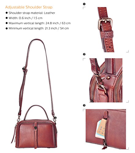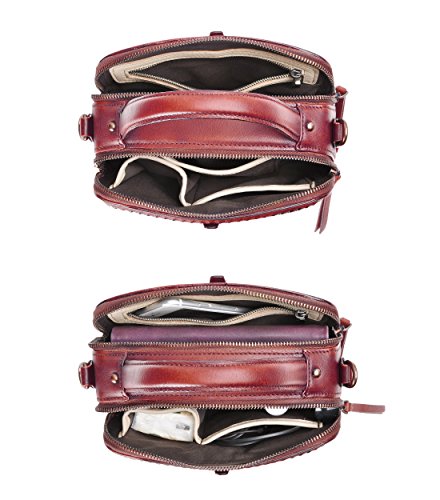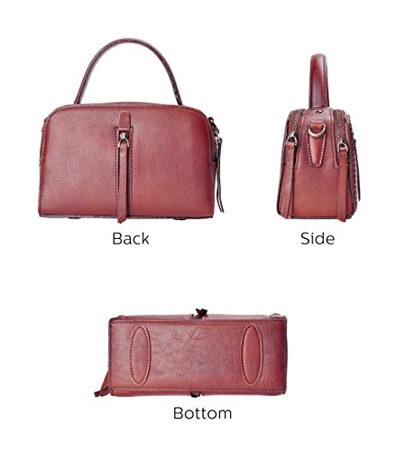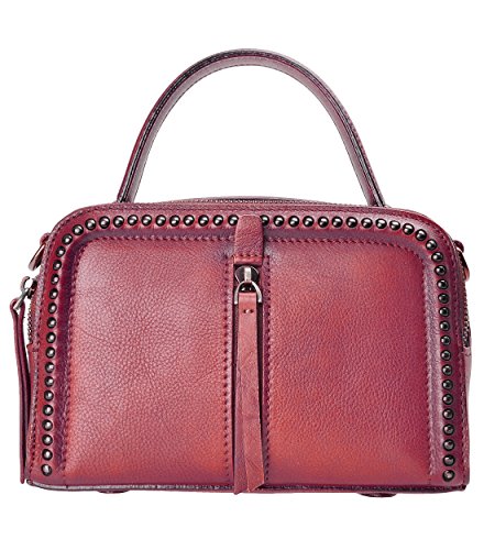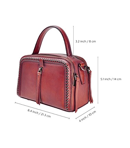 ZLYC Womens Small Genuine Leather Top Handle Handbags Vintage Rivet Studded Double Zipper Crossbody Shoulder Bags Purses