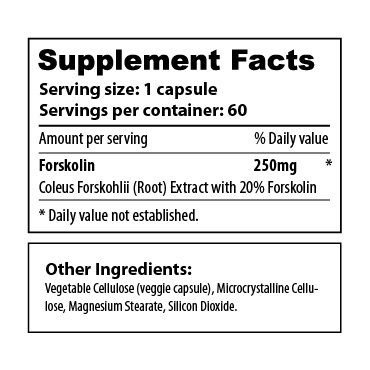 CONTAINS 250 MG : These Vegan Capsules contain 250 MG of Forskolin with a 20% Potency