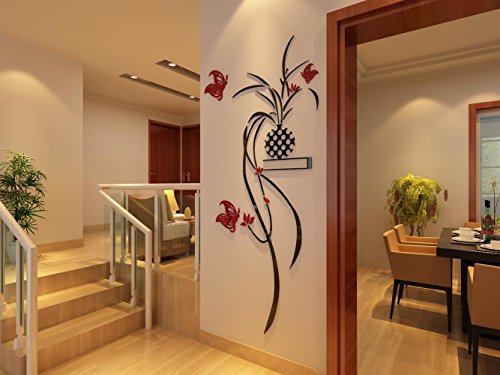 3d Potted Plant Wall Murals for Living Room Bedroom Sofa Backdrop Tv Wall Background, Originality Stickers Gift, DIY Wall Decal Wall Decor Wall Decorations (Red, Large)
