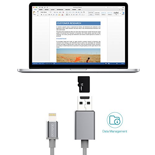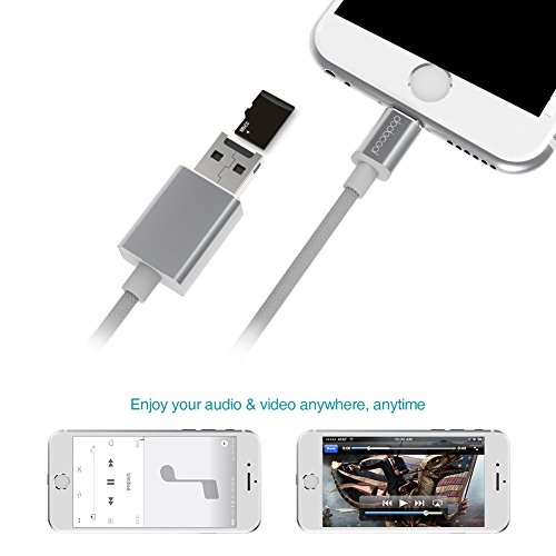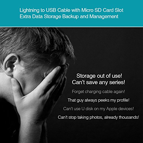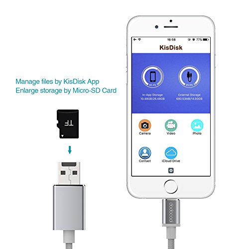 [Micro SD memory card slot] Simply insert a Micro SD memory card into the card slot inside the USB connector and plug the cable into your Apple Lightning device and use KisDisk App for data transfer. Supports various file formats.