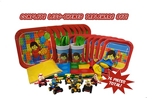 -. Title : Party Kit for Lego-Themed Parties (Serves 8) Full Easy Clean-Up Tableware Set and Decorations, Plus 8 BONUS Buildable Race Car Toys with Mini-Fig Drivers! Grab these great party supplies!