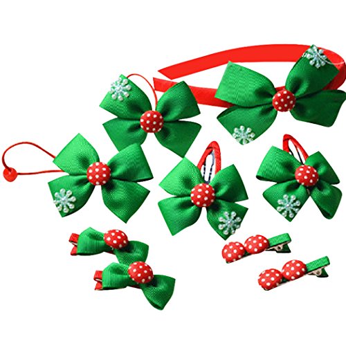 Product Description Lovely beauty Christmas design headbands; hair clips and hair ropes Mounted on ribbon wrapped snap clips easy attachment to hair Can be attached to baby's hairdesign be the best Christmas gift for your lovely child Pick one to match your girl's outfit Package includes: 9 hair accessories kit , set of 9 0