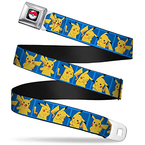 Buckle-Down's iconic SeatBelt Belt is a cool, smart, and exciting blend of fashion and function. Always a conversation starter, the SeatBelt Belt adjusts to perfectly fit your waist while showcasing your unique sense of style. Please note, this is a belt to hold up your pants, and NOT a safety device to use in a vehicle. This product is Officially Licensed by Pokemon and Made in USA by Buckle-Down Inc.Feature