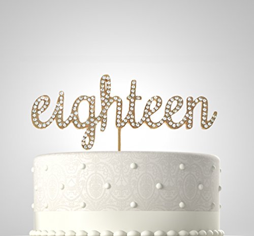 Rubies & Ribbons "eighteen" Metal with Rhinestones Birthday Cake Topper Party Decoration with Gift Box (Gold)