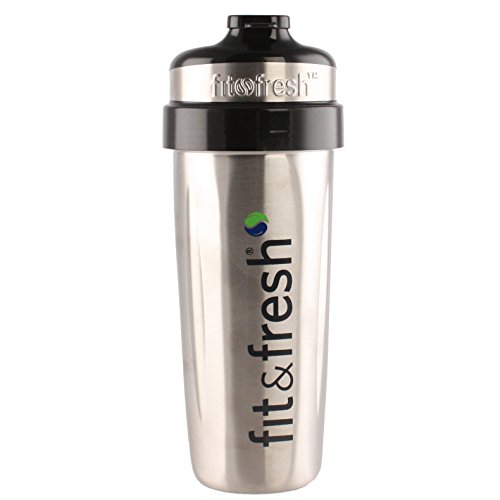 Fit & Fresh CleanTek 26 ounce Stainless Steel Shaker Cup with built in agitator