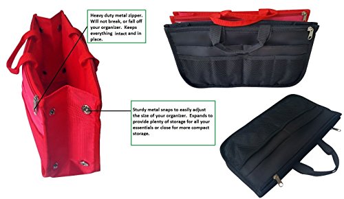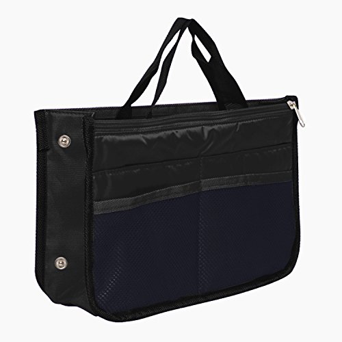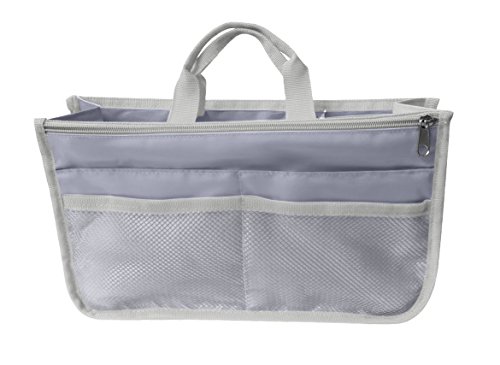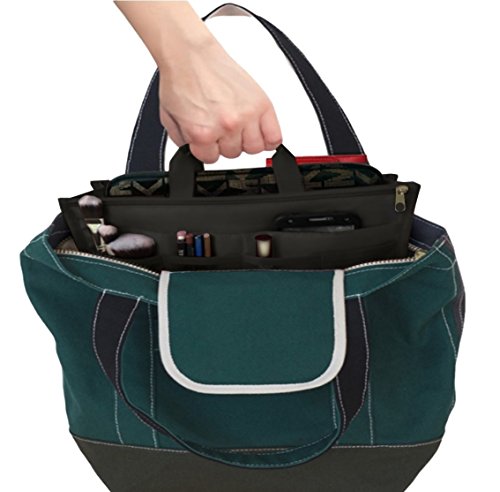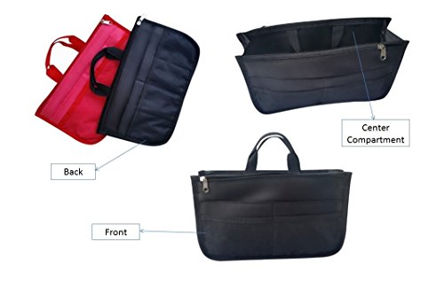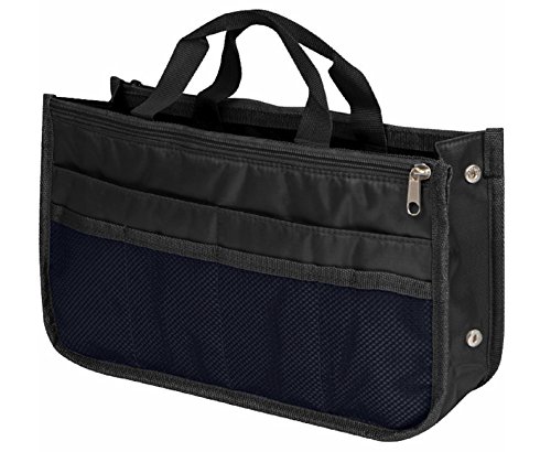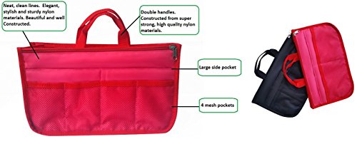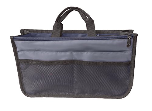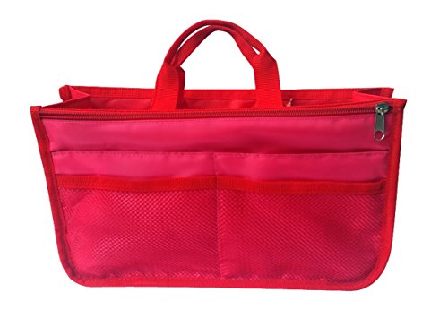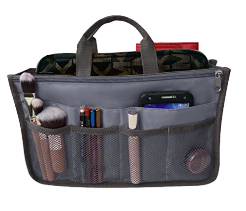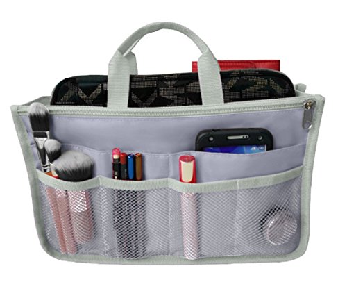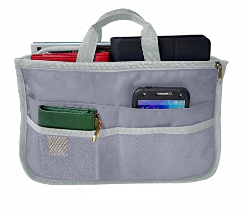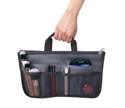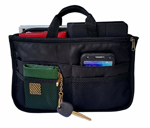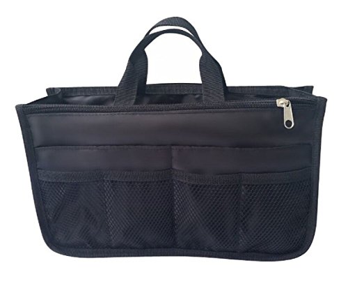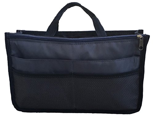 Product Description The RWC Portable handbag storage organizer, Purse insert, bag liner, travel organizer, keeps all of your essentials fully organized inside your satchel, tote, travel bag, suitcase, luggage, handbag, crossbody bag. Designed with thirteen pockets to offer plenty of storage and two sturdy straps to help you switch handbags with ease. This handy purse insert expands to maximize space in larger bags. Perfect to organize Mummy Handbag, baby diaper bag, baby stroller, backpack, gym bag, handbag of all types and sizes. Lots of space for makeup or cosmetics, toiletries, stationery, ipad, cell phone, laptop, books, magazines etc. No more searching through piles of stuff to find what you are looking for. Dimensions: 12.5" x 7.5" x 4 0