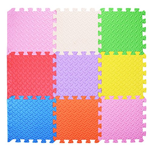 -. Feature : Perfect for improving your kids Imagination, Creative Games, Early Education; Visual Sensory Development & Hand Eye Coordination. / Safe, soft and durable; Easy to use with colorful interlocking tiles; Easy to clean with damp cloth.. / Non-Toxic, tested FREE of Lead, BPA's and Phthalates. / Solid Foam colorful EVA mat, 9 color. / Package & Size: 35.4" x 35.4" baby playing mat, 11.8 x 11.8 x 0.47 inch.