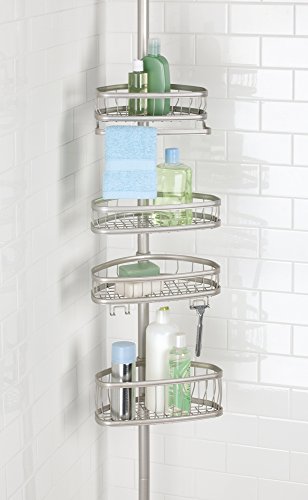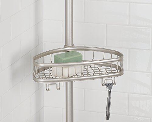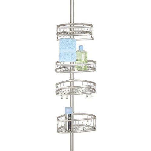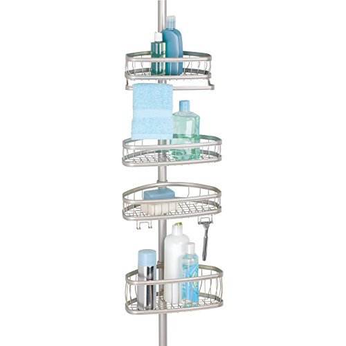 mDesign Bathroom Constant Tension Shower Caddy Pole for Shampoo, Conditioner, Soap - Satin