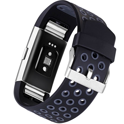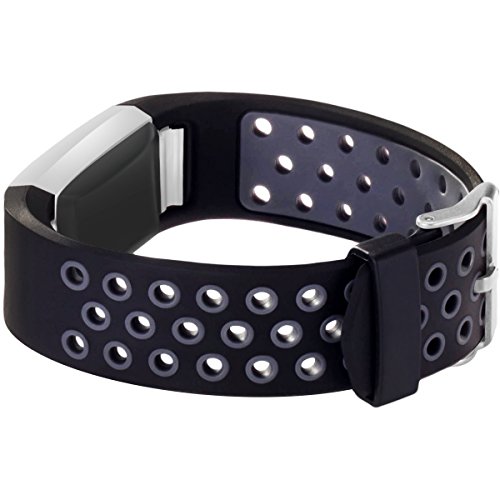 Band for Fitbit Charge 2 HR with rows of two-color compression molded perforations reduce weight and improve ventilation, No WEAR-OFF