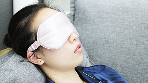 PINCO VON Silk Sleep Mask & Blindfold Eye Mask for Traveling, Flight, Nap or Yoga (Cherry-Blossom Pink)
