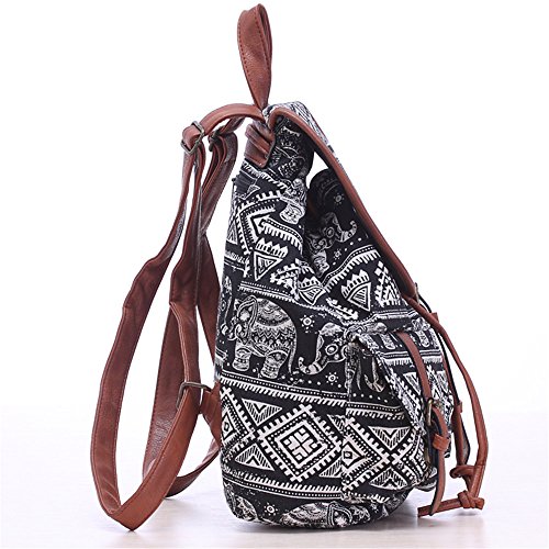 -. Title : Cfanny Women's Elephants Aztec Pattern Buckle Flap Backpack