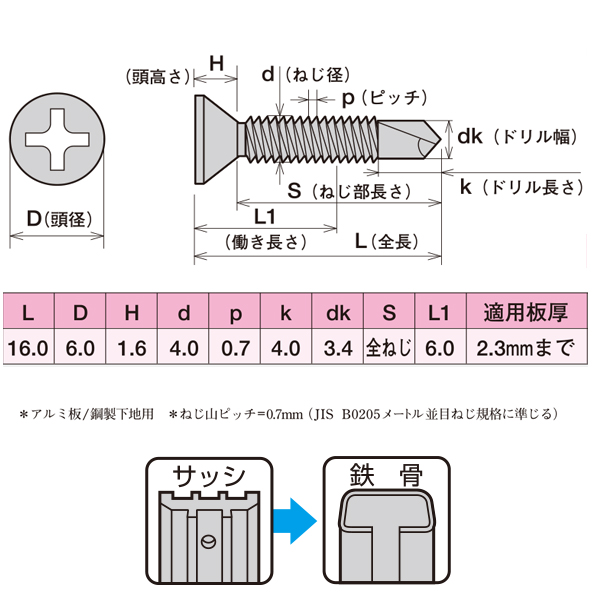 ●サッシ+鉄骨用ドリルビス