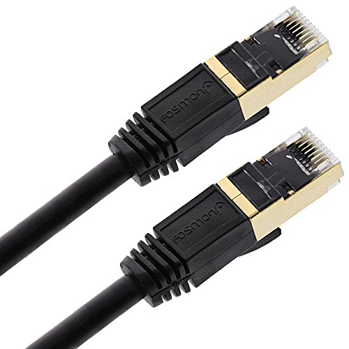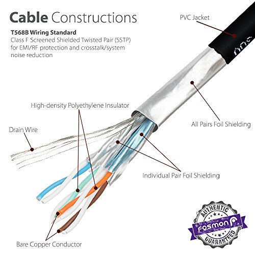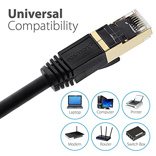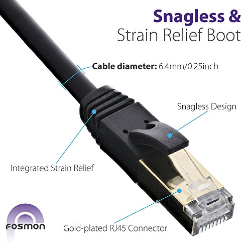 CAT7 Ethernet Cable, Fosmon (Black - 100 Feet) CAT7 Shielded RJ45 Ethernet Network Patch Cable - Ultra Speed 10 Gigabit 600Mhz Patch - Modem, Router, LAN, Printer, MAC, Laptop