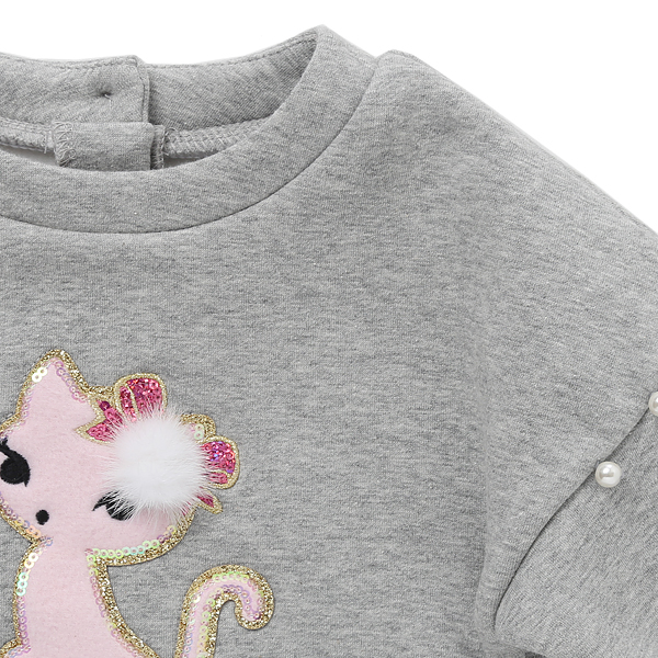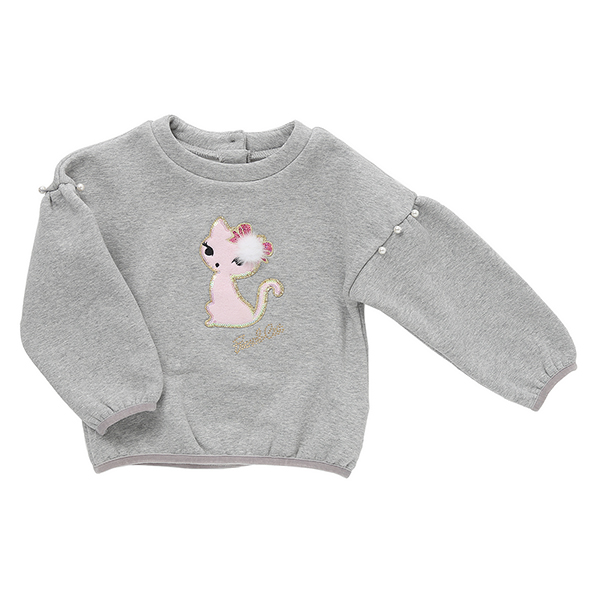 상품설명 그레이 컬러의 티셔츠로 소매와 허리 부분이 귀엽게 블루종 되어 있어 더욱 코디감을 높여 주었고, 블링블링한 고양이 포인트와 함께 사랑스러운 밍크 모티브를 함께 믹스해주어 더욱 귀엽게 입힐 수 있습니다. 안감 기모처리된 따뜻한 티셔츠입니다.
