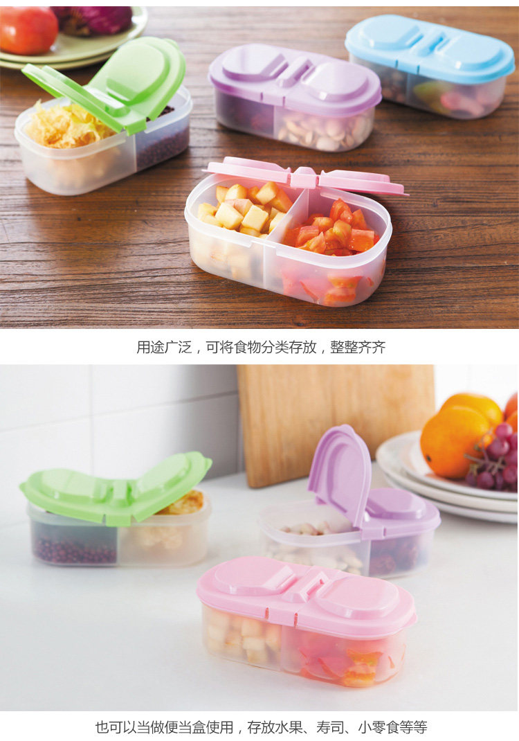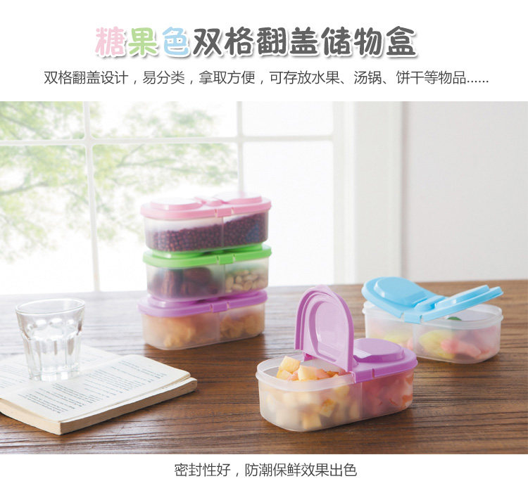 介绍:多用途双格储物盒,家里五谷杂粮、零食干果、泡菜冷菜