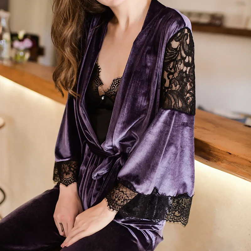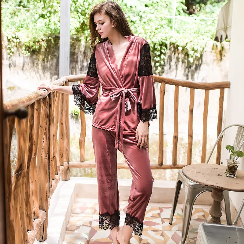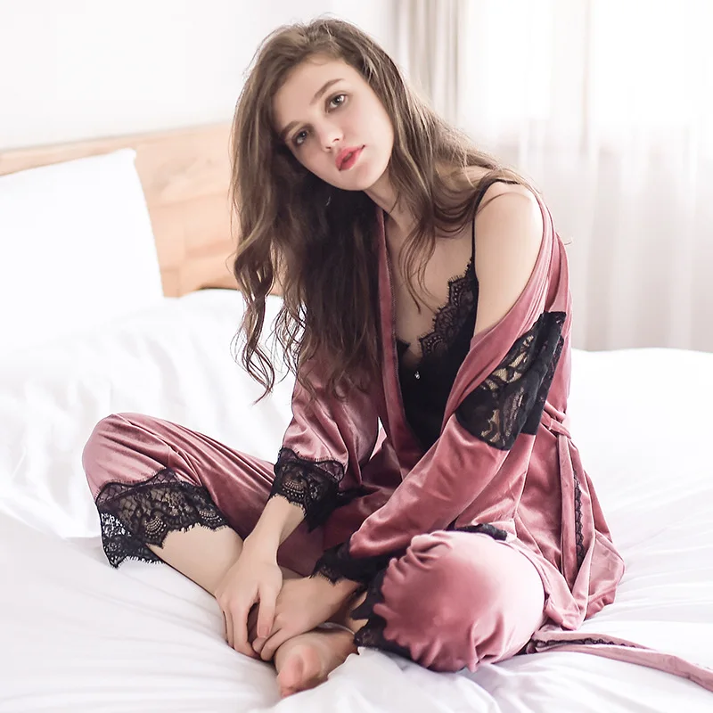 style:Autumn New Velvet 3 Pcs Sleepwear