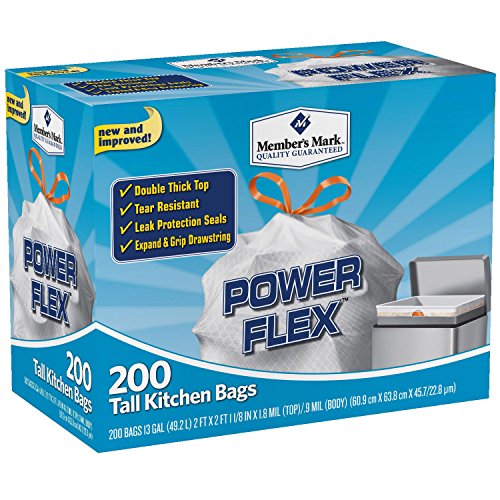 Member's Mark 13 gal Power Flex, Leak Protection, Tall Kitchen Simple Fit Drawstring Bags