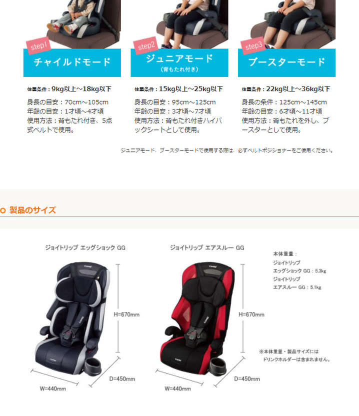 ●チャイルドモード・ジュニアモード・ブースターモードと成長に合わせて簡単に使える3ステップタイプ