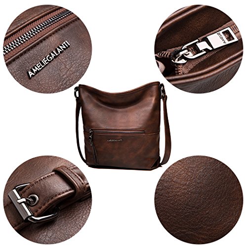 -. Brand : AMELIE GALANTI -. Department : womens -. Feature : Material : High quality of PU leather. Interior 100% cotton / Dimensions: 10.63x 3.54x 9.45 inches (L x W x H) / Zipper closure. front zipper(Decoration) and back side zipper pocket. Adjustable shoulder strap. / Interior features:1 main compartment,1 slip pocket and 1 interior zipper pocket. / Nice capacity, Long lasting. Fit on many occasions. Also is a great gift idea. -. ProductGroup : Shoes -. ProductTypeName : HANDBAG -. Size : Small -. Title : AMELIE GALANTI Women's Small Cross-body Bag Shoulder Hobo Zipper Purse
