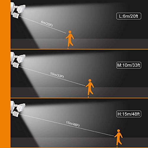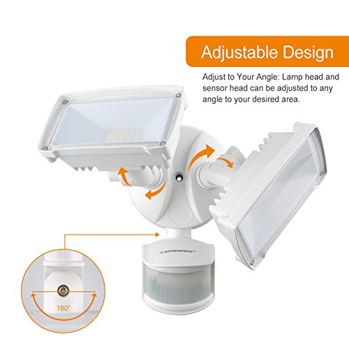 - HIGH SENSITIVITY & ADJUSTABLE DESIGN: Up to 180°wide sensing angle and max 50ft sensing range. Easy to adjust the light heads, lens hoods and motion sensor to different angle as your requirement.