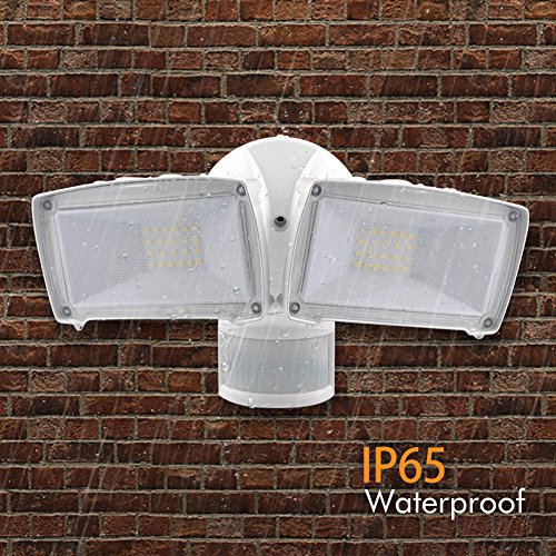 - IP65 WATERPROOF: IP65 waterproof rating ensures that your 2 head security light fixture won’t give in in rain, sleet or snow weather. Perfect for Entryways, Stairs, Yard, Garage,workshops, and large area lighting requirements.