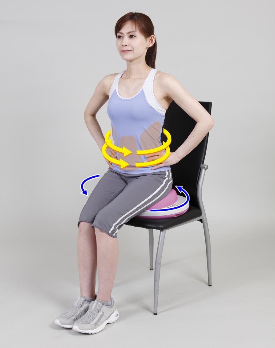 Movement while supporting muscles around the stomach with a convex and concave seating surface conscious of the pelvis