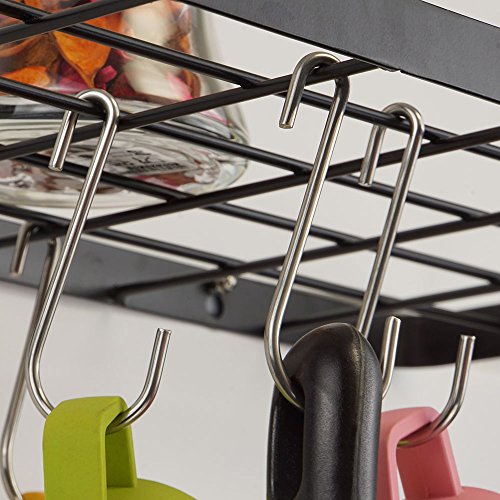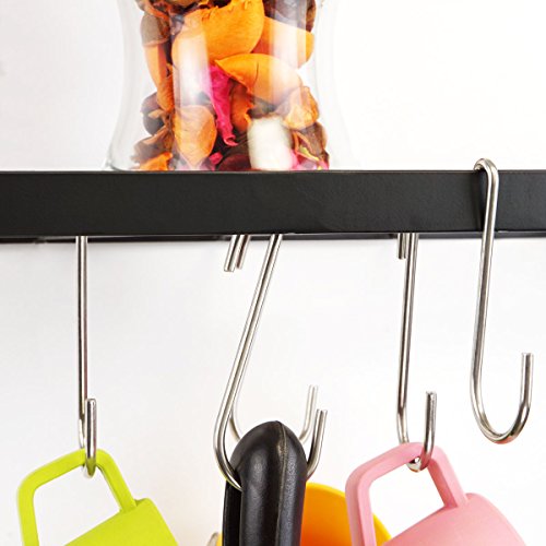 BRAND: RuiLing MATERIAL: 100% 304 Stainless Steel Heavy Duty. Made of heavy-gauge 304 stainless steel, these hooks will put your kitchen gadgets, tools, pots and pans on display, keeps them within quick reach, and frees up cabinet space, all at the same time. The tools don't rub or scrape against one another like in a drawer, which minimizes damage to your valuable investment. The hooks are easy to install on any rack or shelf without any tools. ADVANTAGE: Sturdy Durable - Heavy Duty stainless steel 304, 4mm thick, the hooks are more durable and heavy duty to be used. Multi-purposed: Perfect for your small KITCHEN UTENSIL,such as Pots,Utensils,aprons, hot pads, spoons; Perfect for your CLOSET ORGANIZATION,hanging your purses,lint roller,hats, bags,clothes; Perfect for SHOWER ROOM hanging shampoos, soaps, body cleansers, razor and more through the baskets or shower bag; Perfect for GARDENING hanging plants, bird-feeders, and garden decorations. Care instructions: Wipe clean with a damp cloth. PACKAGE INCLUDED:10PCS 3.5 Inches S Shaped hook 0 |