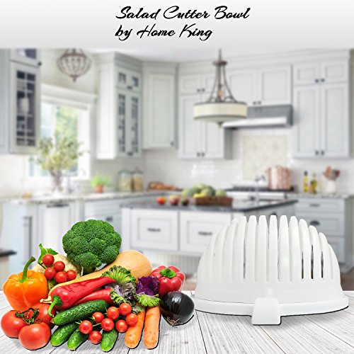 Salad Mixing Bowl by Home King | 60 Seconds Vegetable Slicer & Salad Spinner in One | Easy to Make Healthy Salads with Vegetables and Fruits + Free Salad Recipes E-Book/ white plastic serving bowl