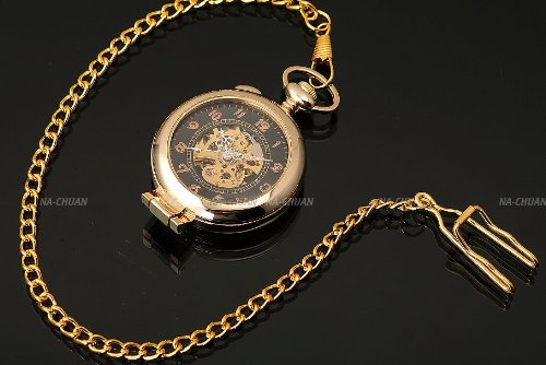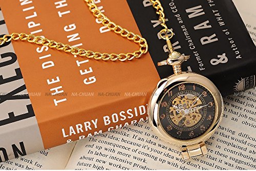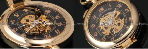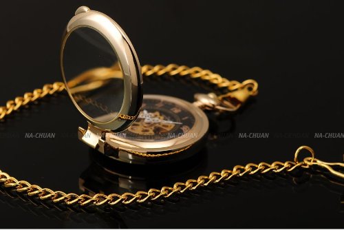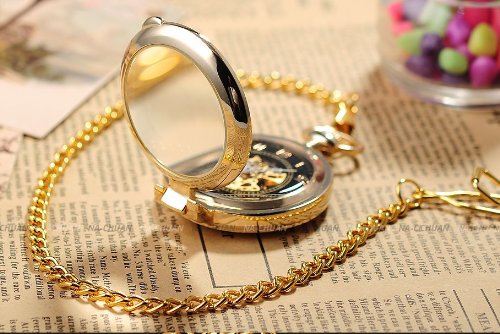 -. Title : AMPM24 Unique Golden Magnifier Skeleton Mechanical Men's Pocket Watch Chain Gift WPK022