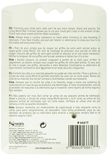 Studio : Living World Publisher : Living World Binding : Misc. Product Description Trimming your small pet's nails can't be any more simple. Sharp and precise, the Living World Nail Trimmer allows you to cut your small pet's nails in one smooth stroke. Check nails once a week and trim when necessary. Perfectly sized for rabbits, guinea pigs and ferrets. 0