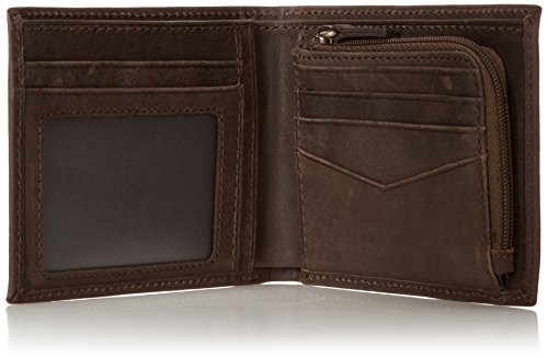 5 credit card slots, 1 ID window, 3 slip pockets, 1 zip coin pocket, 1 bill compartment