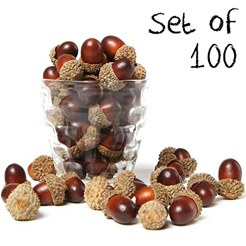 Autumn is in season, stylistically, all year round. Bring a reminder of the crisp air and falling leaves of autumn by filling a vase, jar, or other container with these imitation acorns. Each acorn features a realistic design with a glossy brown finish. These artificial nuts are also perfect as craft items for your friends and family as you decorate and create together. Use these 100 imitation acorns to add a touch of autumn joy to your daily life.**Official MyGift® product.** Glass Jar not included.